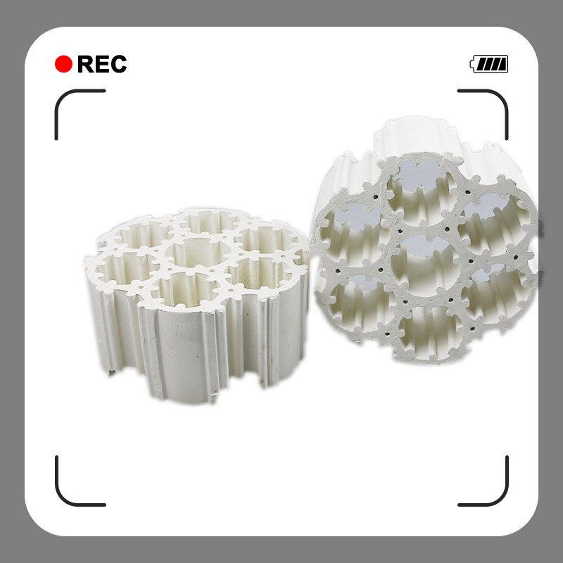 5、全瓷填料結(jié)構(gòu)新穎、可切割、裝填方便輕瓷填料系列屬于規(guī)整填料,可切割拼裝成圓,不僅裝填方便,而且能使整個填充平面得到百分百的利用,由于其他規(guī)整填料不可切割,塔四周避免不了有大小不等的空洞,壁流、溝流現(xiàn)象嚴重,不同程度的影響著使用效果。總之,輕瓷填料成功地解決了比表面積與空隙率兩者之間的矛盾,既不易堵塔而使用效果又優(yōu)良,是填料塔用戶的極佳選擇。